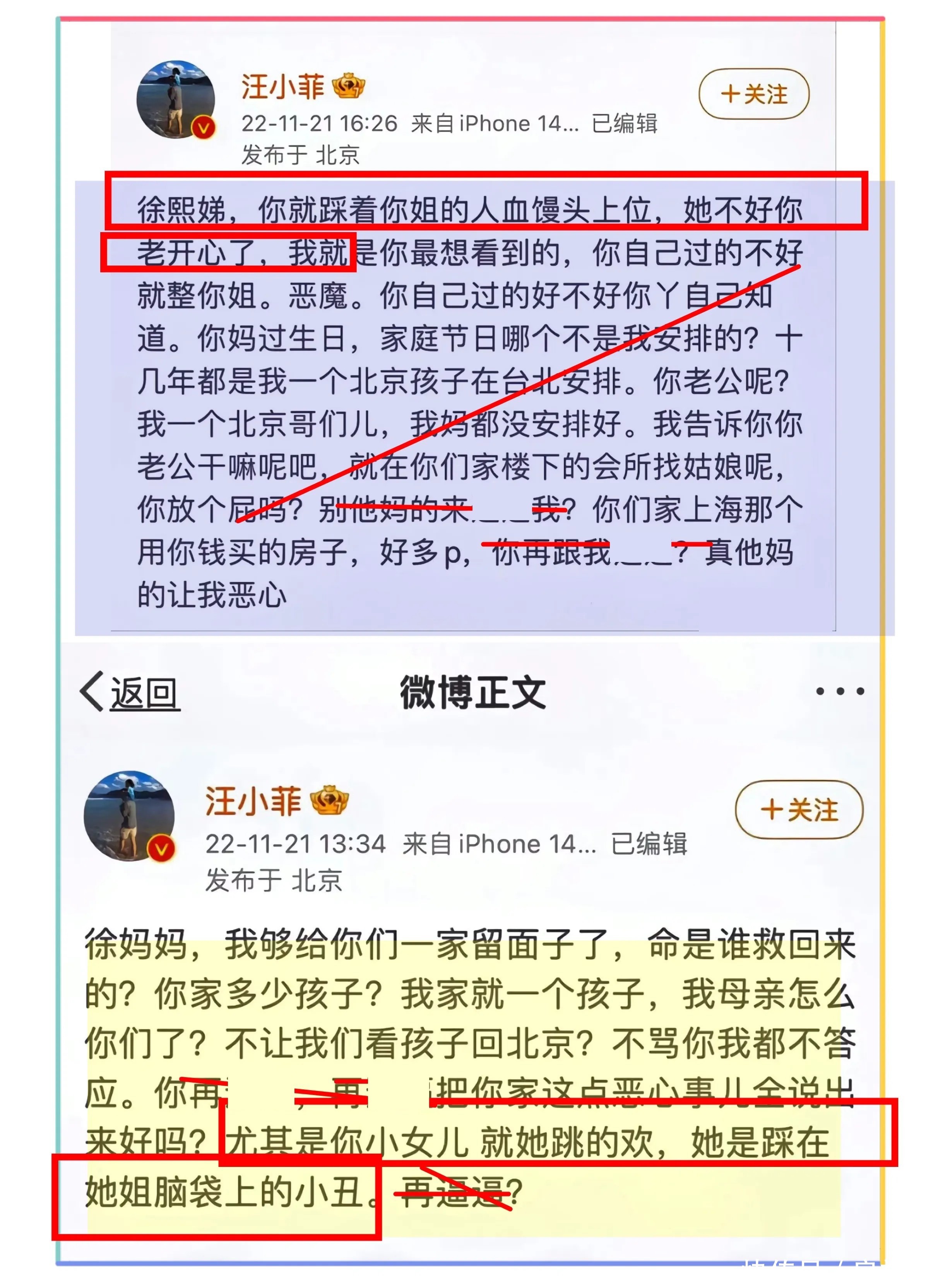 汪小菲曾直言小S是踩着姐姐的牺牲往上爬的人,只要察觉到大S处境不佳,便会表现得异常兴奋。他甚至用“恶魔”这样的字眼来形容她在家庭关系中的角色定位。