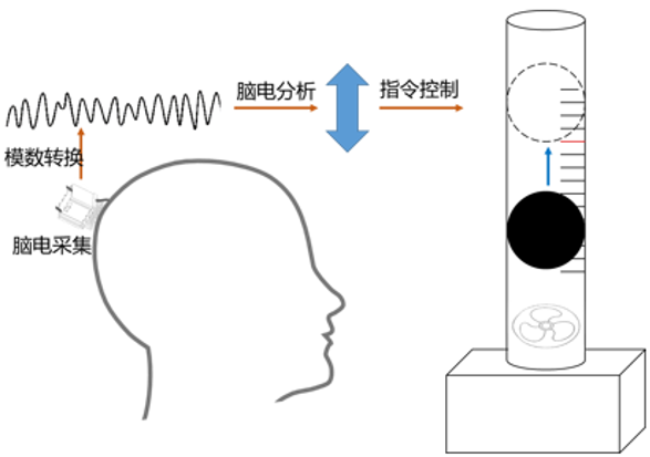 “脑控小球”项目围绕实时脑电采集与信号处理构建完整闭环系统,实现对风洞小球悬浮高度的稳定意念控制。 受访者供图