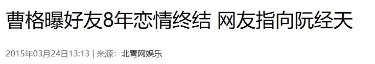 北青网 2015.3.24 曹格曝好友8年恋情终结 网友指向阮经天