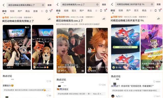 这当然离不开该IP长期积累下来的影迷, 尤其在抖音平台上,本就聚集了大量老粉和更年轻的潜力新用户,加上站内也有大量活跃的创作者,为这一轮IP互动的发酵奠定了基础。 上映前后,抖音站内不同赛道多位优质达人,从各自的视角和擅长点出发,挖掘《疯狂动物城2》的互动玩法。例如@中中自编的zoo编舞就有超10万的点赞;猫猫博主@土豆豆南瓜瓜与狐兔的合影有超过11万的点赞。 这些优质达人的内容, 卷入了更多IP粉丝的关注、激发了分享欲,很多用户也自发分享出了观影感受 ,话题热度加持下,很多用户分享的内容,也有很高的热度,有用户简单晒出了全场最暖心的台词,“Loveyou,partner”,就获得了超过52万的点赞。 丰富多元的内容池中,也发酵出了多个热点 ,#疯狂动物城2治愈了我的内耗、#疯狂动物城合照我先预制上了、#对疯狂动物城2的开发不足1%等话题吸引了更多用户关注。