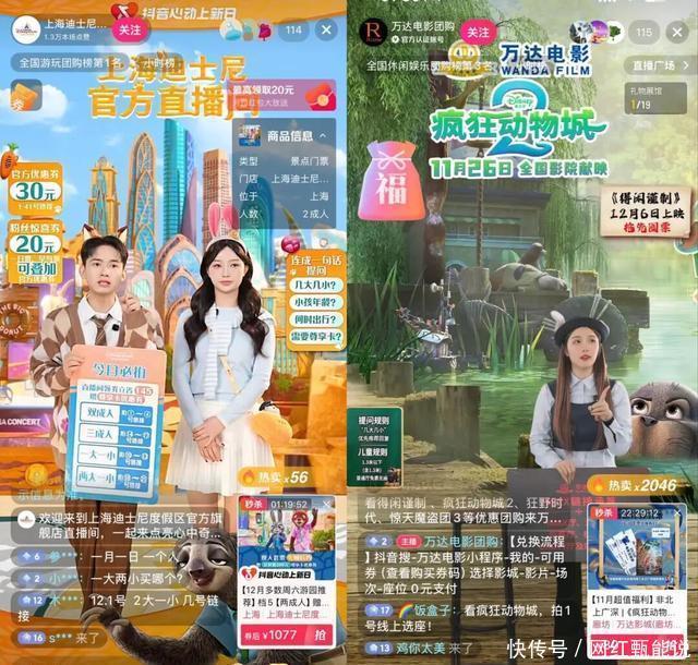 趁着《疯狂动物城2》的全民热度,上海迪士尼度假区也开启了持续直播,缩短内容到商业之间的链路。 毕竟这种有一定时效性的产品,需要商家及时跟上,在直播时效和直播时长上拉满,才能最大程度接住流量、提升转化率。 据了解,在影片正式上映前,上海迪士尼度假区官方就开启了直播,打好了基础;万达影视也是同样,不同城市的26个蓝V矩阵账号纷纷开启直播,做好了准备。